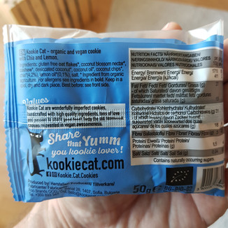 Parce qu'au boulot j'ai toujours faim vers 11h et 17h, et que j'en ai un peu marre (pour ne pas dire, complètement ras-le-bol) de manger du fromage blanc ... j'ai testé les cookies de la marque Kookiecat.
