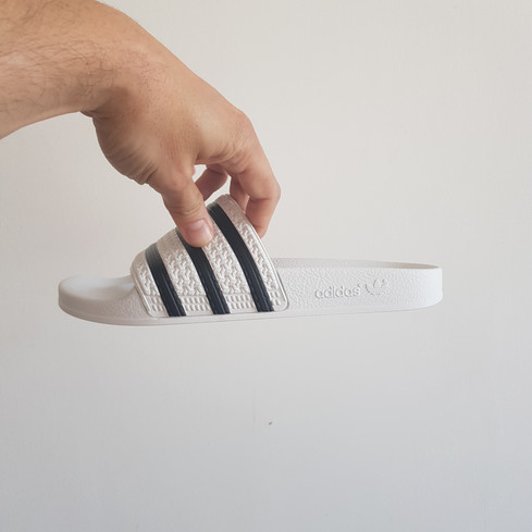 J'ai donc pris ces Adilettes pour "le confort" d'être chez soi. Bon, OK, je ne dis pas que je serai capable de les porter pour aller à la plage ... bah oui, je n'ai plus de tongs ...