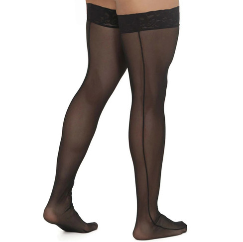 Le 1er accessoire que l'on peut trouver pour accompagner un sous-vêtement fetish pour homme est le bas en résille.