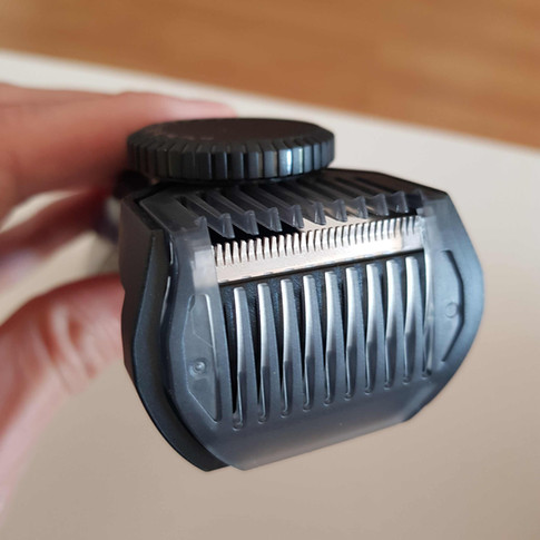 Et pour ce qui concerne la tondeuse pour la barbe, sa molette qui permet de faire les réglages est particulièrement efficace et est un gros gain de temps quand, comme je le fais, on souhaite avoir différentes longueurs de poils. Il n'y a pas besoin de changer de sabot.